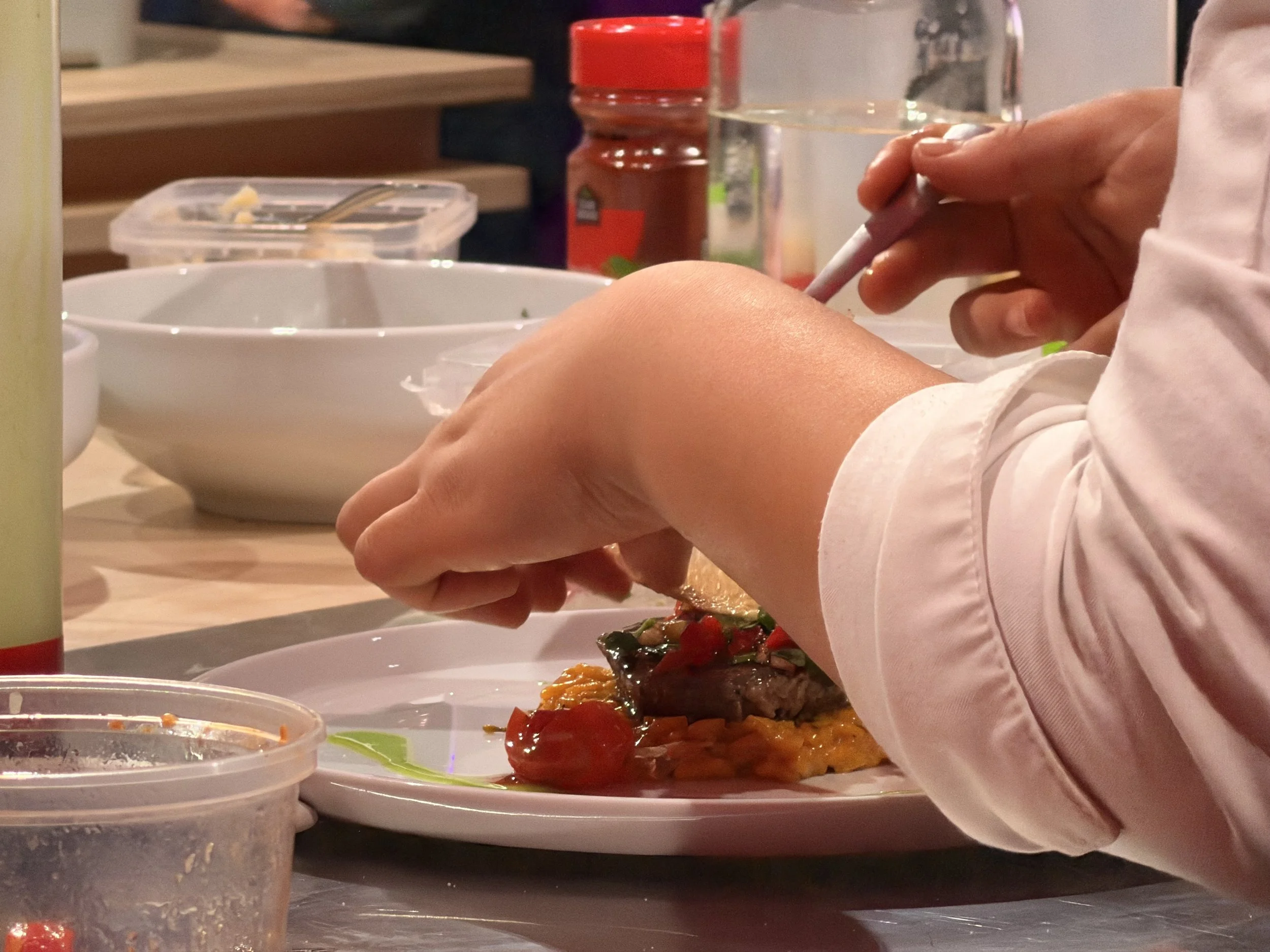 Tien travaille au restaurant Le Neuvième. À 20 minutes de la limite de temps, les chefs ont été forcés d’improviser une entrée pour les juges en utilisant des petoncles. Faire face aux imprévus et aux changements fait partie du métier de cuisinier.