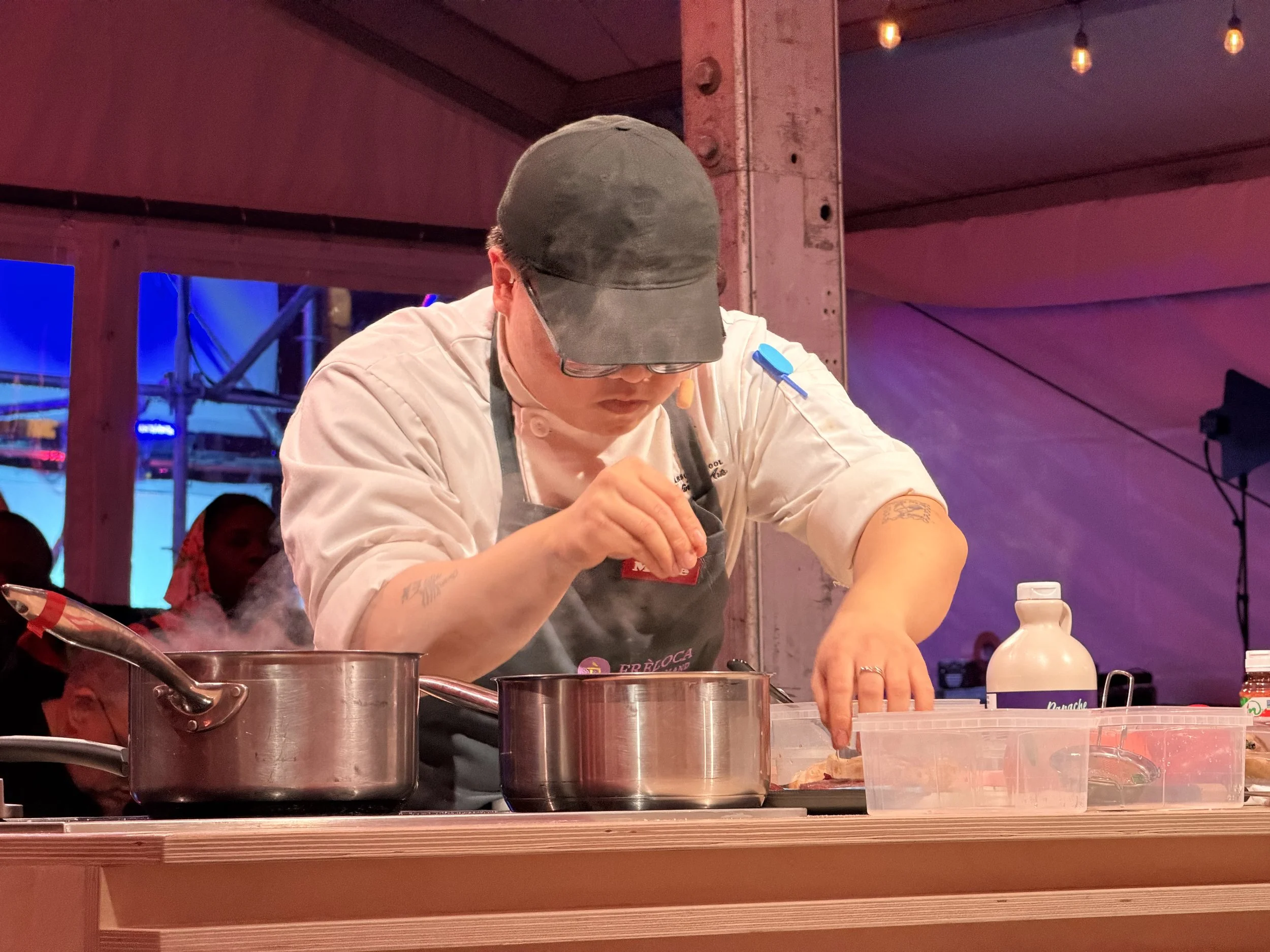 Dans le cadre du festival Montréal en Lumière, les Duels Gourmands Frèloca opposait de jeunes chefs ayant le courage de se mettre en danger devant un jury.